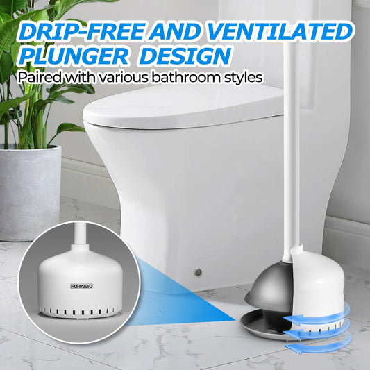 FORASTO Toilet Plunger with Holder,Plungers for Bathroom with Holder,Heavy Duty Plunger with Cover,Bathroom Decor,Bathroom Accessories,Toilet Bowl Cleaners,White